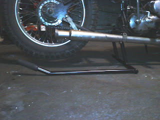 i built a center stand for my Triumph so I can finally take off the tires and work on it easier. The stand cost $20 in materials and took about 3 hours to build. Simple easy design. Works Incredible.