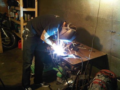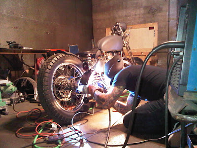 Cutting the handle bars down and welding them back together. Modifying taillight bracket and welding it to the bike.