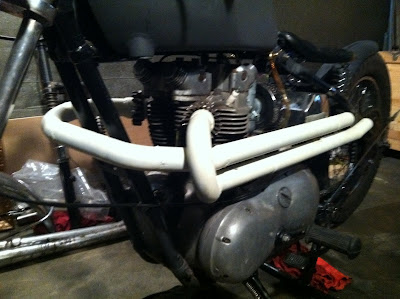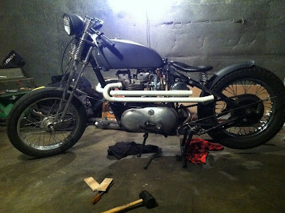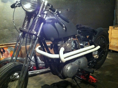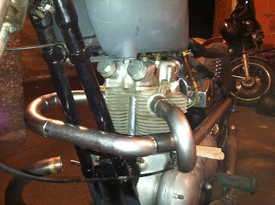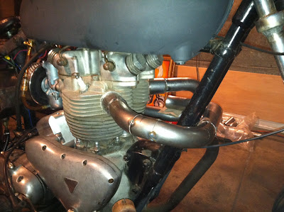 Started with some prebent and straight pipe then cut it up till it fit nice and welded it up. Sounds easier than done. Thanks to Rowdy and the Kid for helping out. Painted it with high heat paint then wrapped the pipes with white fiberglass tape.